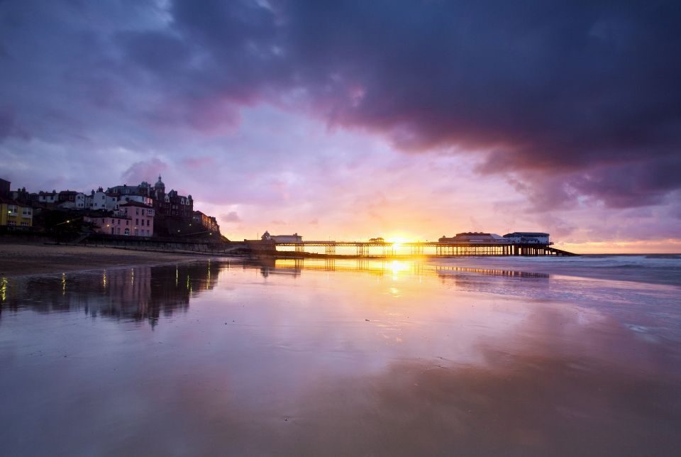 Cromer Beach lies below the town and its Victorian pier on the Norfolk Coast.