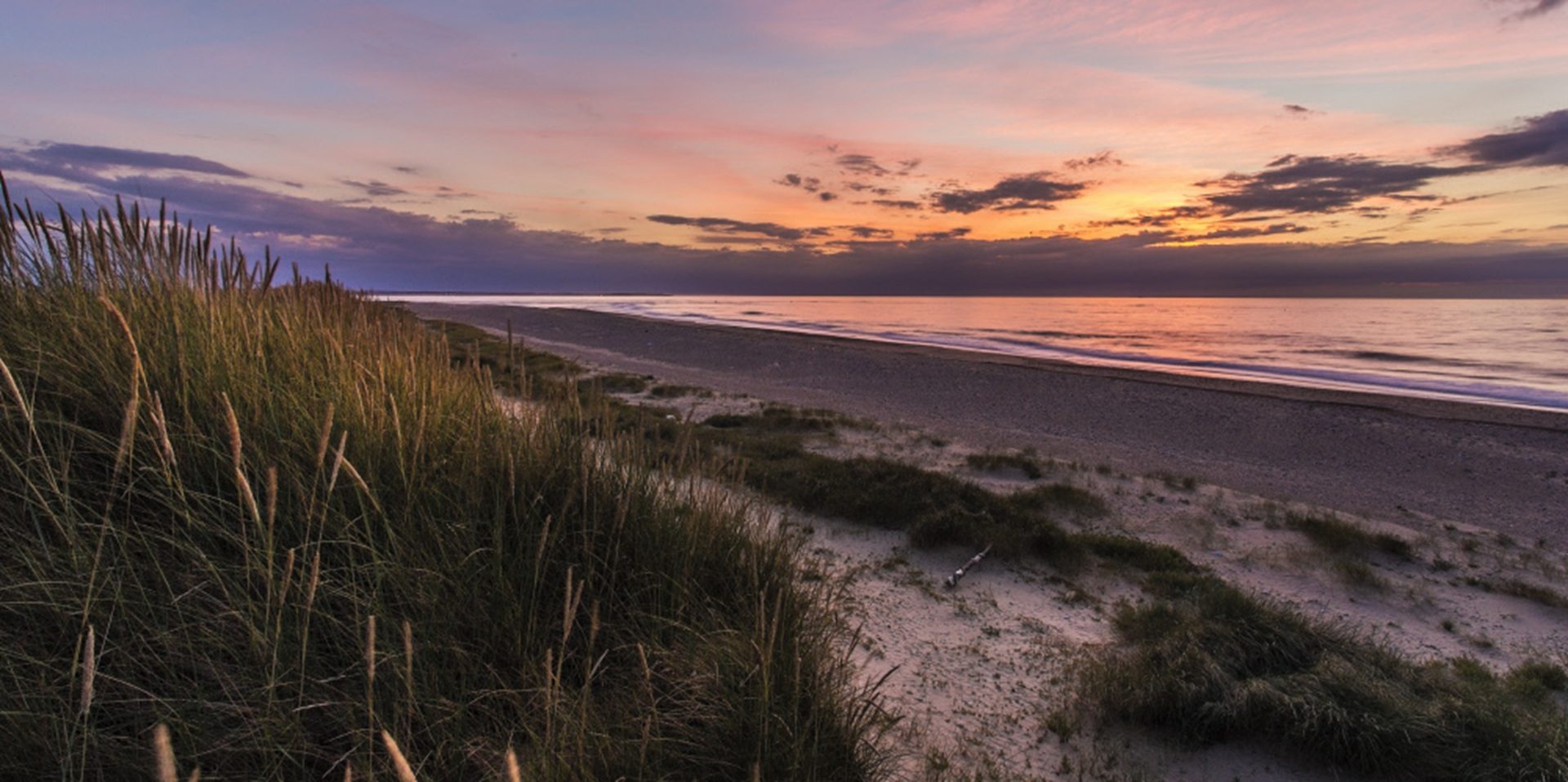 The coastline here forms a ‘barrier beach’, a gentle offshore slope beneath shallow waters, resulting in low wave energy. The long shingle spit and stretches of dunes are backed by saltmarsh and mudflats inland, all of which are continually being reshaped by the sea. Longshore wave direction westward is responsible for dune erosion and recession in some places and coastal deposition in others.